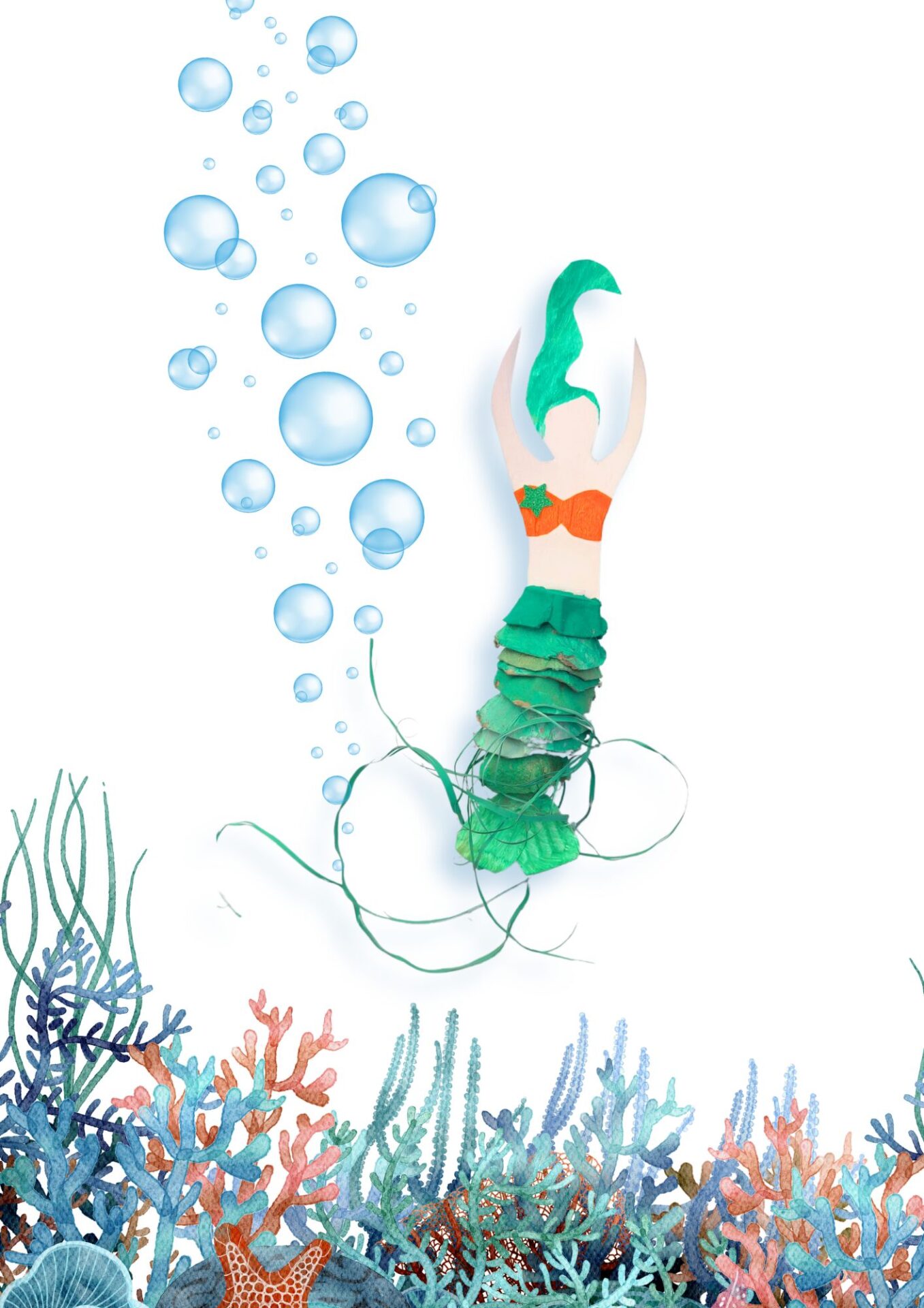 • verf, mengpalet en kwasten: kies uit de verschillende kleuren om je eigen zeemeermin/-man te kleuren