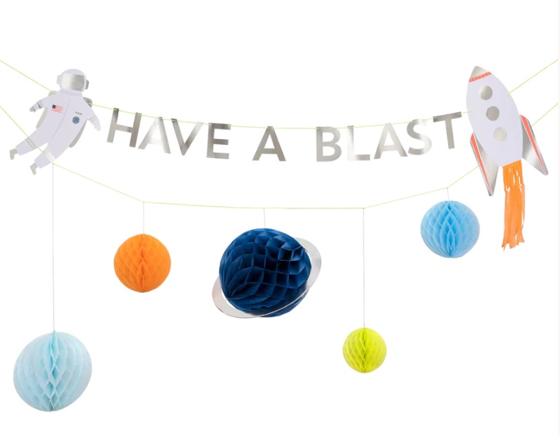 Hé ruimteverkenners! Bereid je voor op een buitenaards avontuur met onze Space & Astronaut Feestbox!
